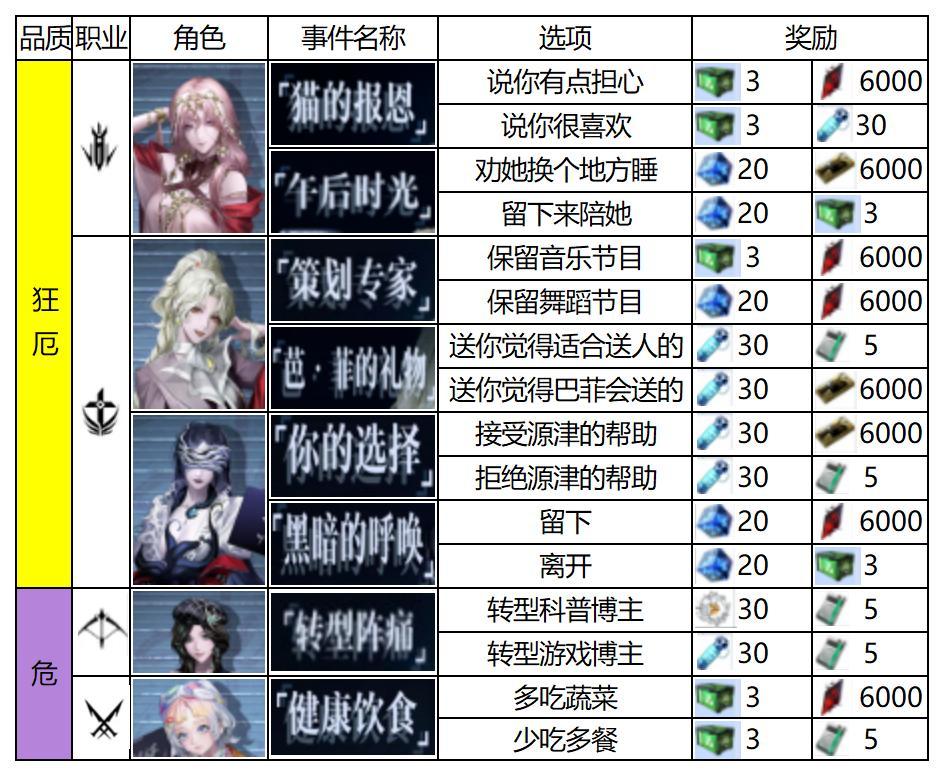 1.背包管理篇 优先开满第一行的刻痕格作为主c装备区,如果是需要多人的体系,开完第一行的格子就优先开角色格,反之优先开刻痕格。最简单的角色排布就是第一行放主c第二行放副c(不要学我的图),第三行往后放辅助和奶妈,选取角色的时候就要先排好,此外暴击c和非暴击c最好错行分布。 2.事件选择篇 非战斗事件>战斗>商店,一层只有一个商店,尽量最后进,尤其是最后一层 合理运用刷新顺序的事件,尽早刷出前路阻塞