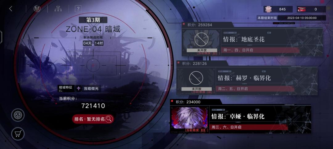 <><><><><><><><><><><><><><> 图文省流版: -抽卡- *71抽3狂(自选箱子拿德雷雅) -养成- *7角色20级 -进度- *1-4章完结(福利资源本没打) -体验- 新手: 》第一天尽量到局长等级24级以上,浊暗之阱01,破碎防线低危 》多余的体力可以在噩兆之种(经验本)消耗,可以考虑借助战打到最高级 》全1级可过1-2章,全20级可过3-4章,无治疗可用恢复“权能”