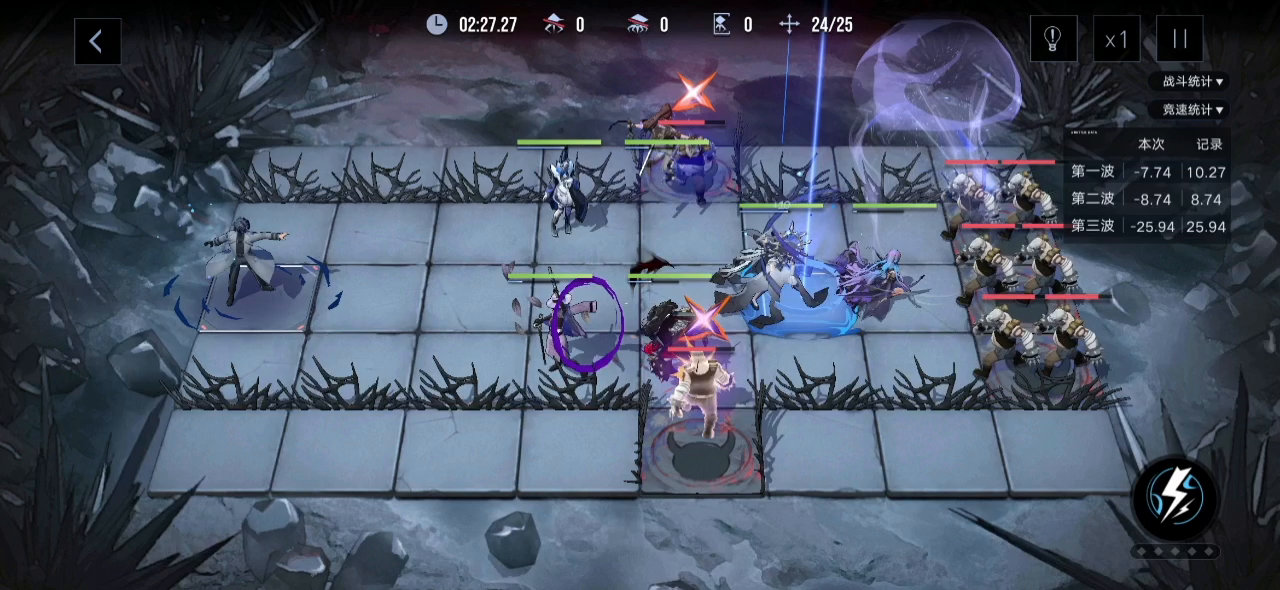 前两关随意,第三关如图所示数据控分,拿满低危奖励不进中危区 具体操作,两路小怪全放,打完boss清两个精英怪,精英怪为远程怪,可以通过调站位卡住精英怪拖时间,一分钟左右结束战斗。
