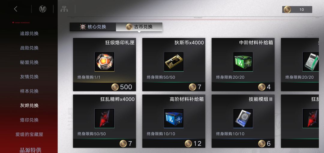 第三期公会战总共可获得代币: 古币:1500 核心(按最高标准):4000 第三期商店搬空所需代币: 古币商店材料:1500 古币商店烙印:1200 核心商店限定:2700 第二期公会战商店只有烙印,核晶,和狂级魂识。第二期公会战层级奖励包含材料——狄斯币&材料箱子(蓝色7个,绿色21个,粗略可能有出入) 换句话说,柳生哥把原先层级的材料奖励移动到古币商店里了꒰ *•ɷ•* ꒱。如果玩家(错过第一
