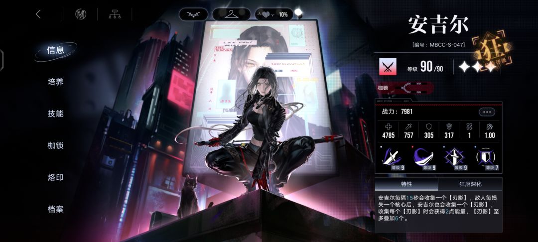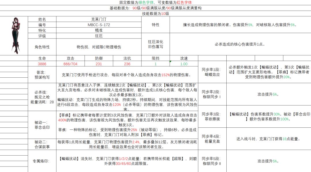 攻速队组件,偏长线; 初始特性,为大招服务,攒种子放大招,人物机制核心,不做评价; 大招,范围破核回能伤害,不够纯粹,伤害方面预估爆发能力有,但是并不是出伤主要倚仗。 被动1,强化核心特性,最关键的技能,主要出伤核心,也是归因于攻速队的缘由。 被动2,废 。。w?这角色还需要专门给一个被动限制强度? 专烙:增加爆发及续航,略微提高短线能力,估计升级会加次数,这样对长线提升可能更大 。 枷锁,估计会