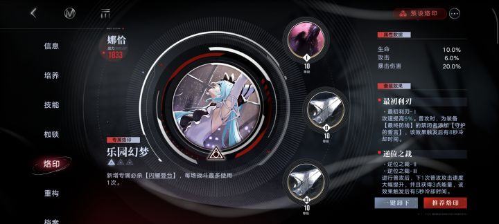 简单介绍一下截止新春版本比较好用的体系队伍,顺序基本按我认为好用程度及强度进行排名。另外简单展示了角色常用烙印,具体还是得根据情况换①真伤队强度无需多言,这边直接给到一个夯。上至公会战暗域数据间隙下至主线深井,没有荡平解决不了的事。重构②重构曜燃烧队重构后曜搭配新限定+离尘,燃烧队也是成功迎来了第二春。有望晋升短线之王,全0锁就能乱杀。有离尘的新局长可以考虑抽一个曜辅助成员:短线:赫斯
