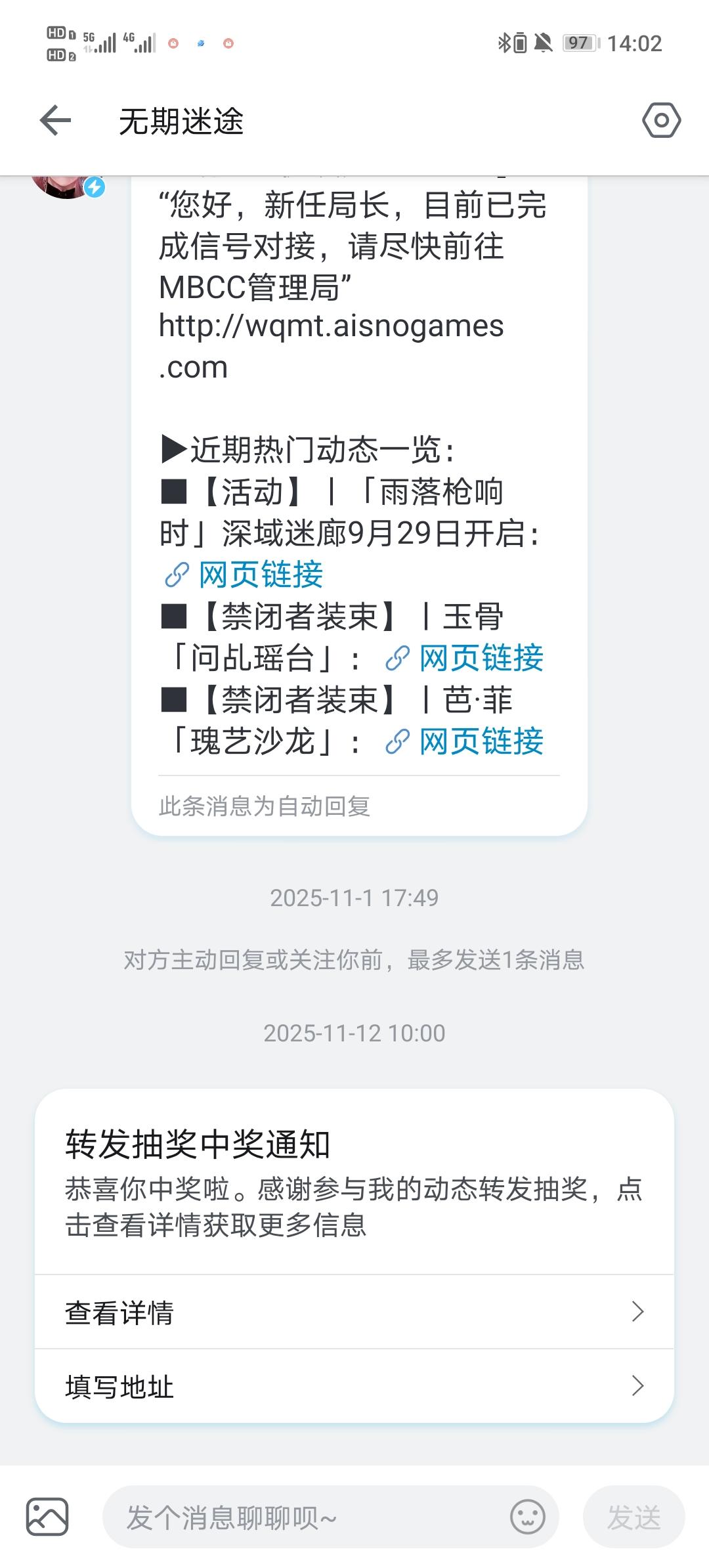 11月的中奖现在才看到