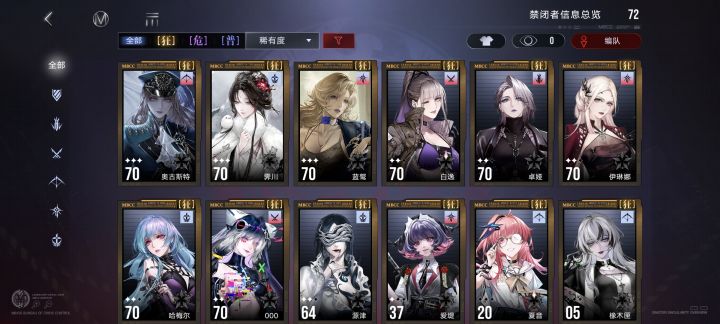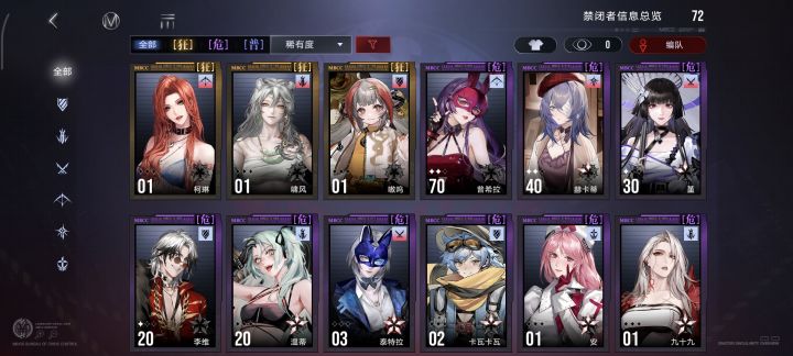 局长们可以找自己需要且感兴趣的。最末尾有兑换码,记得兑换。一.主界面系统功能介绍个人界面:内含设置/局长换装/头像/头像框/称号等。活动大厅:小游戏/极限挑战/角色试用/大活签到等。情绪检测:每天随机一名禁闭者的小剧情/签到。禁闭者:抽到的角色在这里养成。管理局:禁闭者个人剧情/图鉴/派遣/音乐/生日。追踪:抽卡在这里。采购办:商店。可获得异方晶/材料。可获得抵400红晶的皮