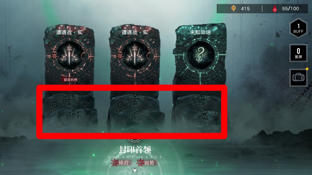 打了这么多局新梦魇,突然发现下面的石碑都有图案,通过对比发现这些图案代表之后两个石碑的事件类型。。。