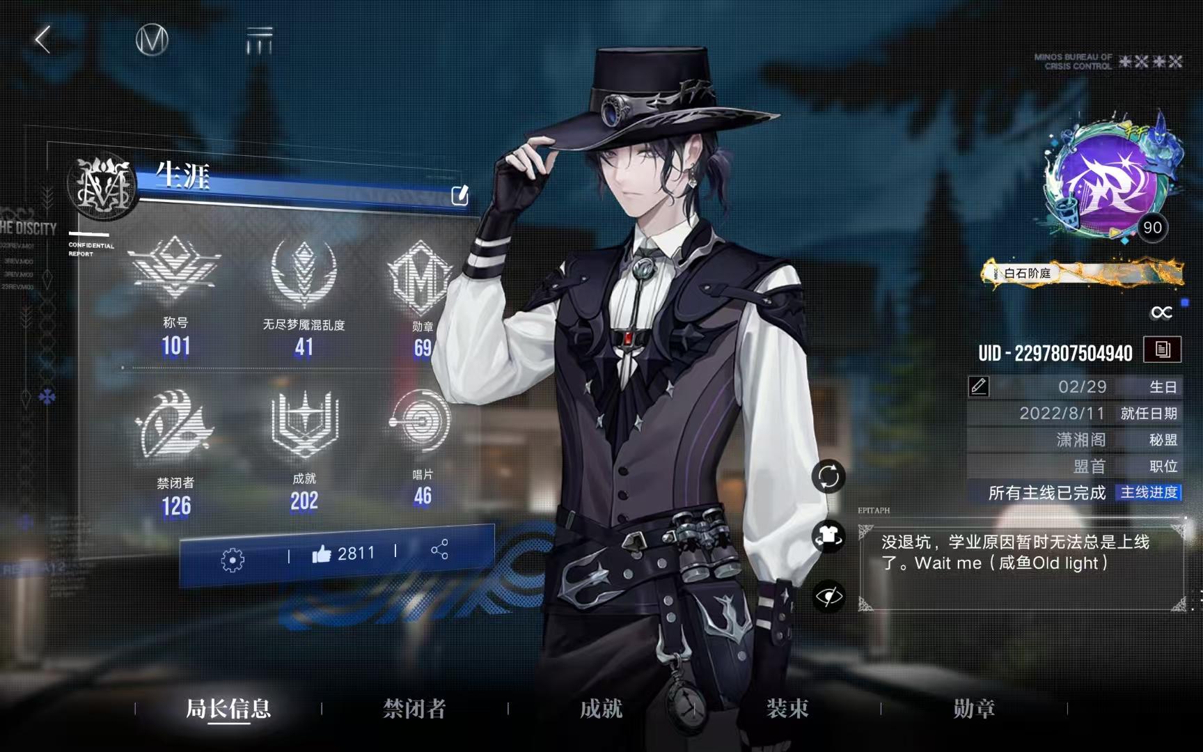当初开服时我还是初二暑假,从那时直到高一开学都是每天上线。后来由于高中寄宿原因(讲个笑话,当年我差四分考上我们当地的一中,是个公办高中,可以走读。于是我被迫去了一个外县的私立高中),这两年有很多天是一位热心网友帮我登录的,现在那位热心网友去对线生活所以退坑了,所以最近一年左右的时间只有我放假才登录。今年我就高考完了,等高考结束我就能接着每天登录了