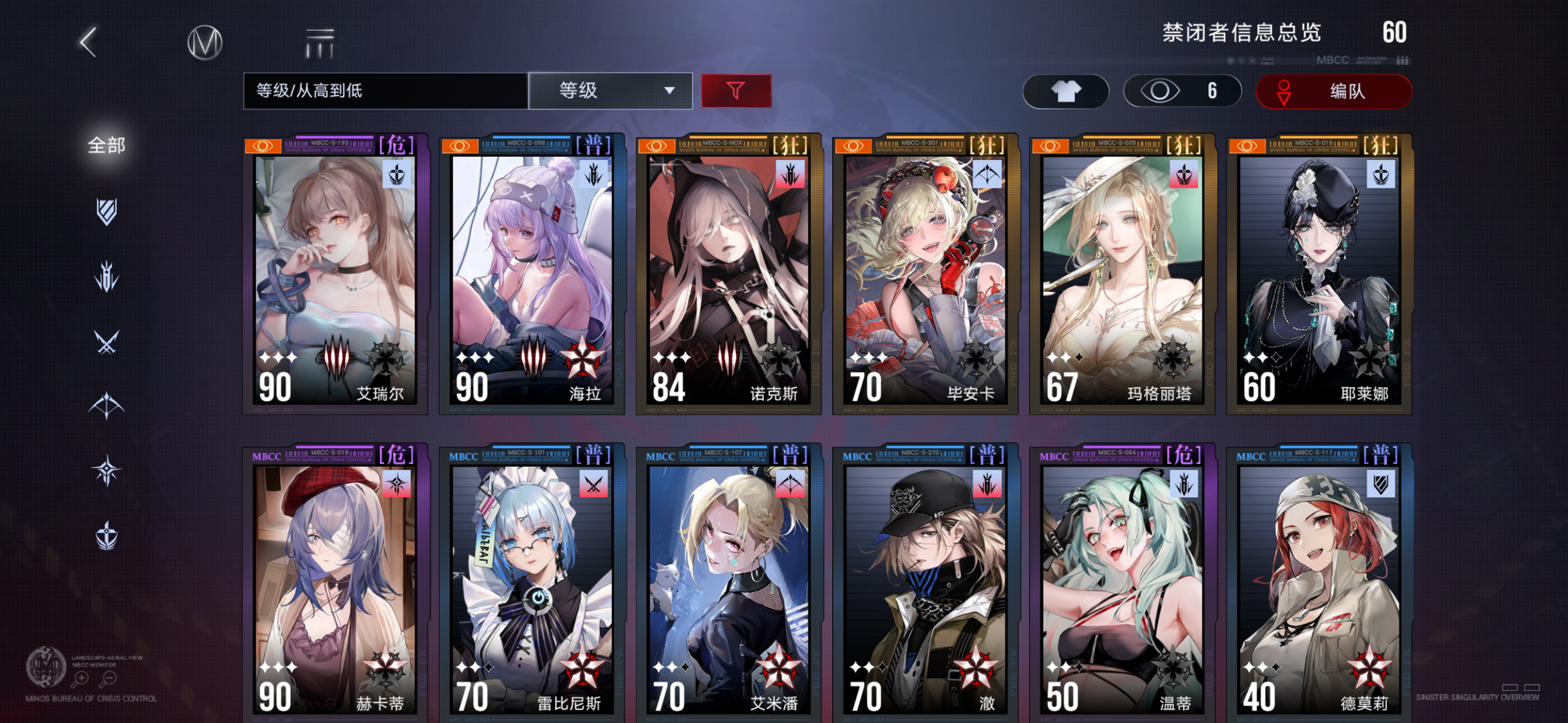 虽然自己打掉神智才通关但前13章也算是全部完美了,好耶!进度:诺克斯、毕安卡开1专毕技能全7,丽塔主动技能7其他5耶莱娜稍微差一点(用法不是很熟练)烙印的话,基本是调律希望回响,调律差2回响差4个。艾瑞尔终幕三件套、毕安卡新城梦想三件套。后续的话先70全开三阶,诺克斯重构得拉90。艾瑞尔我会拉三专,然后会重点养毕安卡—————分割线—————异方晶1.6抽数20。限定还会送抽,搞
