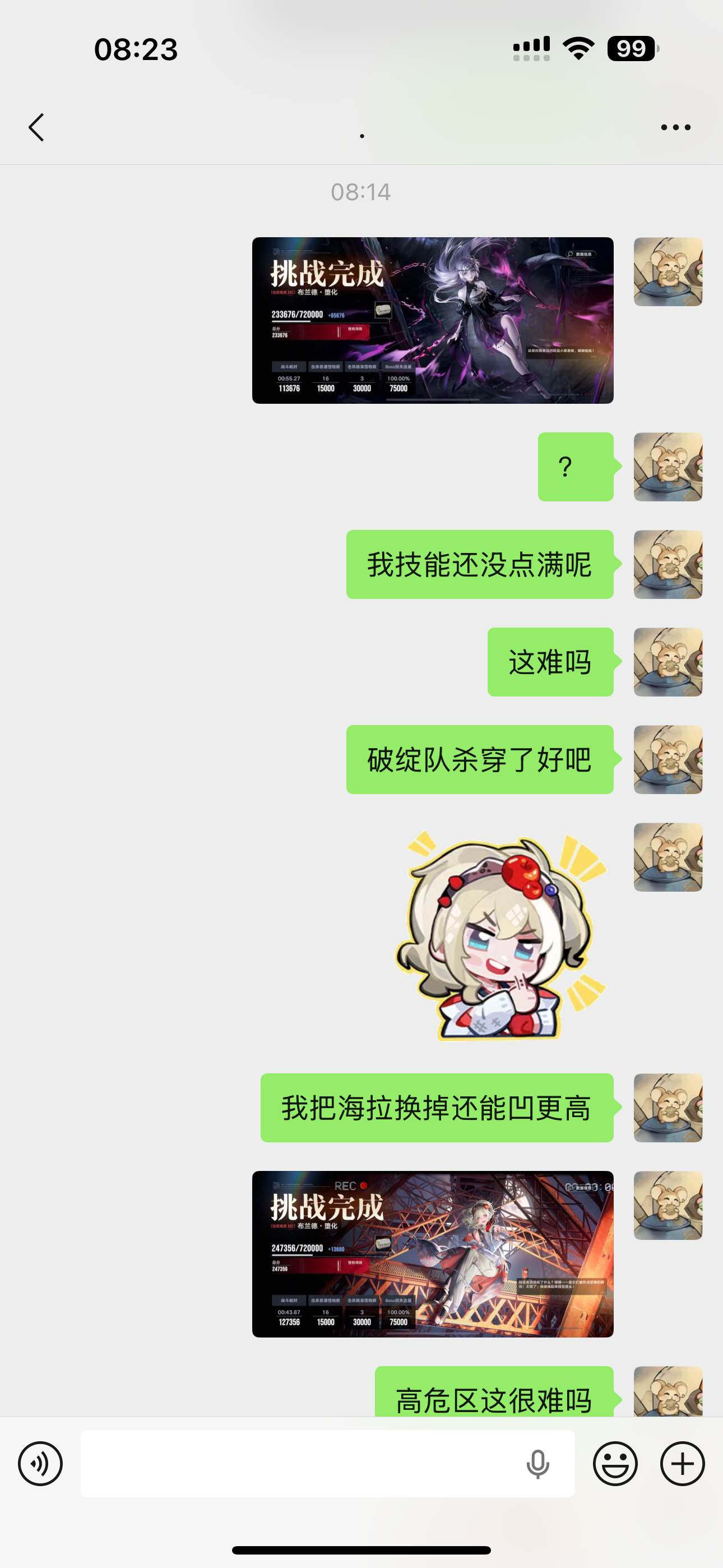 高危区很难嘛,我看我玩了两年的朋友昨天凹了一晚上高危,她现在睡着了,要是再晚点睡可能真睡不着了,入坑第12天,今天第三周刚进高危,毕安卡杀穿了好不好,如果后面两关也顺利的话,我感觉我凹一凹下周能进暗域了
