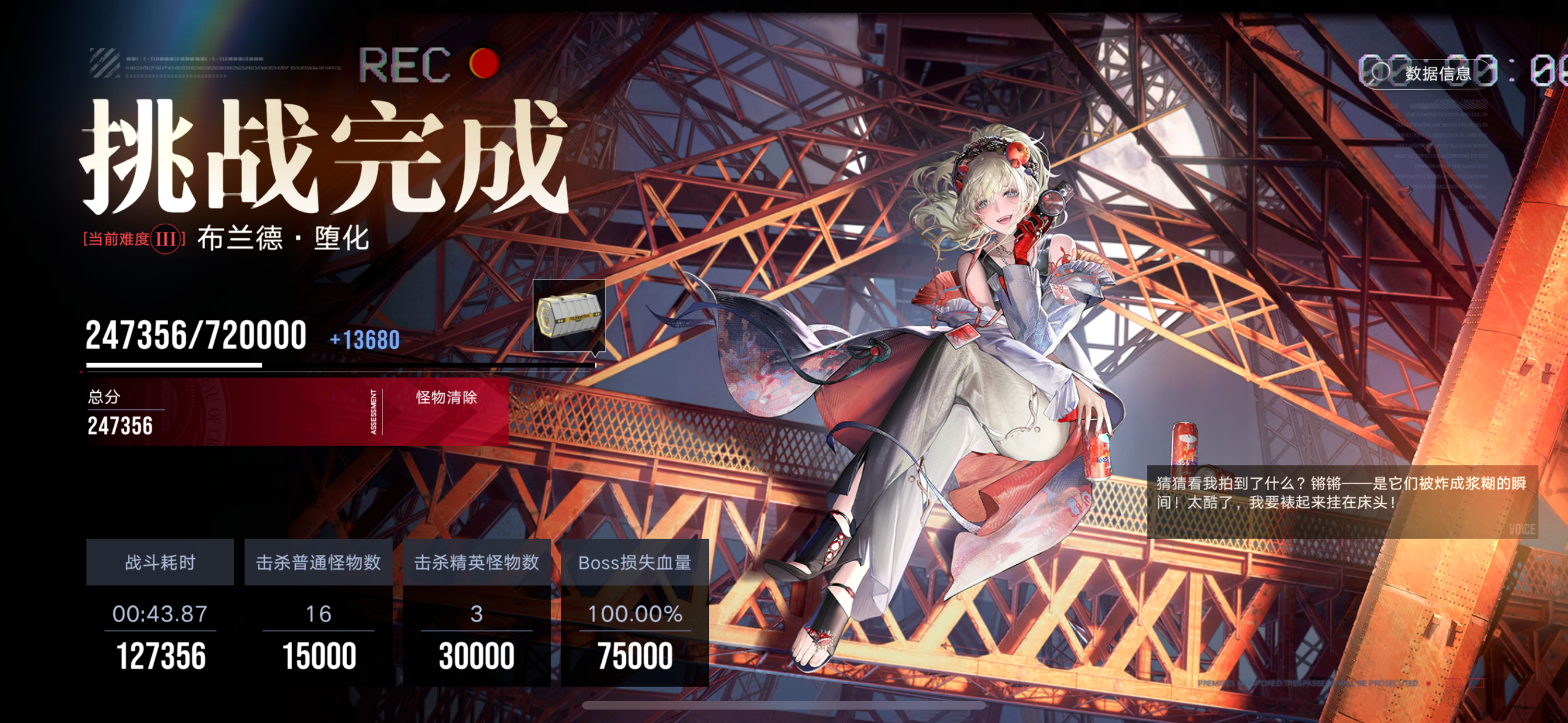 这把有失误,最后萦萦掉了层天雷没发现 但是最高的一回了 最接近4的。萦萦输出低,吃满雷估计也就是3.9,差点上4,除非蓝鹫太给脸了。神秘暴击这块)这个轴下限基本在3.3左右,上限应该可以到4.2左右,暴击可以让你差出一个亿……有失误瑕疵的基本也比没有的打的高,没绷住。#无期迷途攻略 #无期迷途水论坛 #无期迷途萌新 #无期迷途角色推荐 #无期迷途配队 #无期迷途节奏榜
