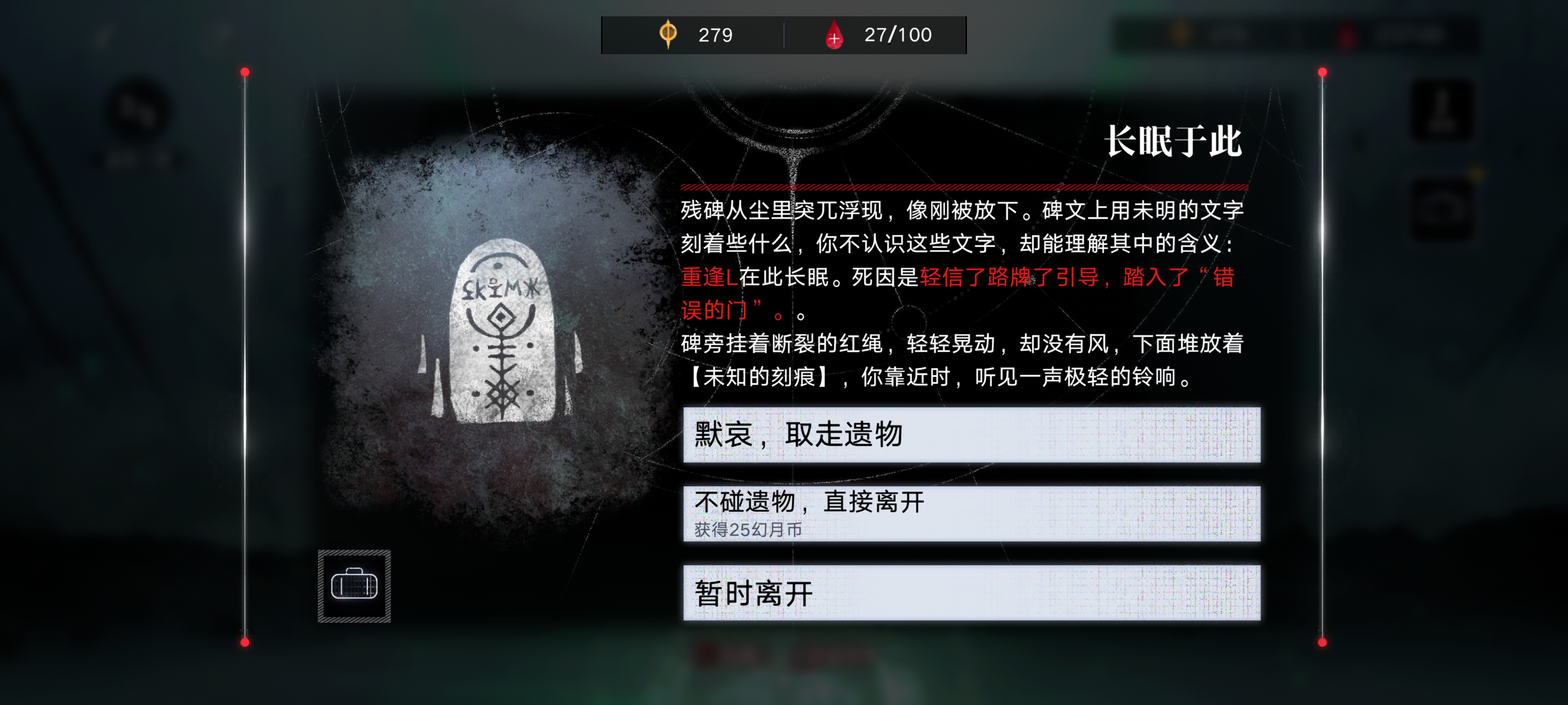 打了这么多局新梦魇,突然发现下面的石碑都有图案,通过对比发现这些图案代表之后两个石碑的事件类型。。。