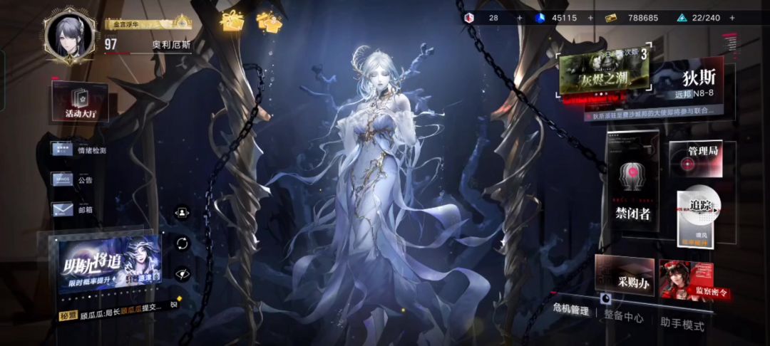 局长们可以找自己需要且感兴趣的。最末尾有兑换码,记得兑换。一.主界面系统功能介绍个人界面:内含设置/局长换装/头像/头像框/称号等。活动大厅:小游戏/极限挑战/角色试用/大活签到等。情绪检测:每天随机一名禁闭者的小剧情/签到。禁闭者:抽到的角色在这里养成。管理局:禁闭者个人剧情/图鉴/派遣/音乐/生日。追踪:抽卡在这里。采购办:商店。可获得异方晶/材料。可获得抵400红晶的皮