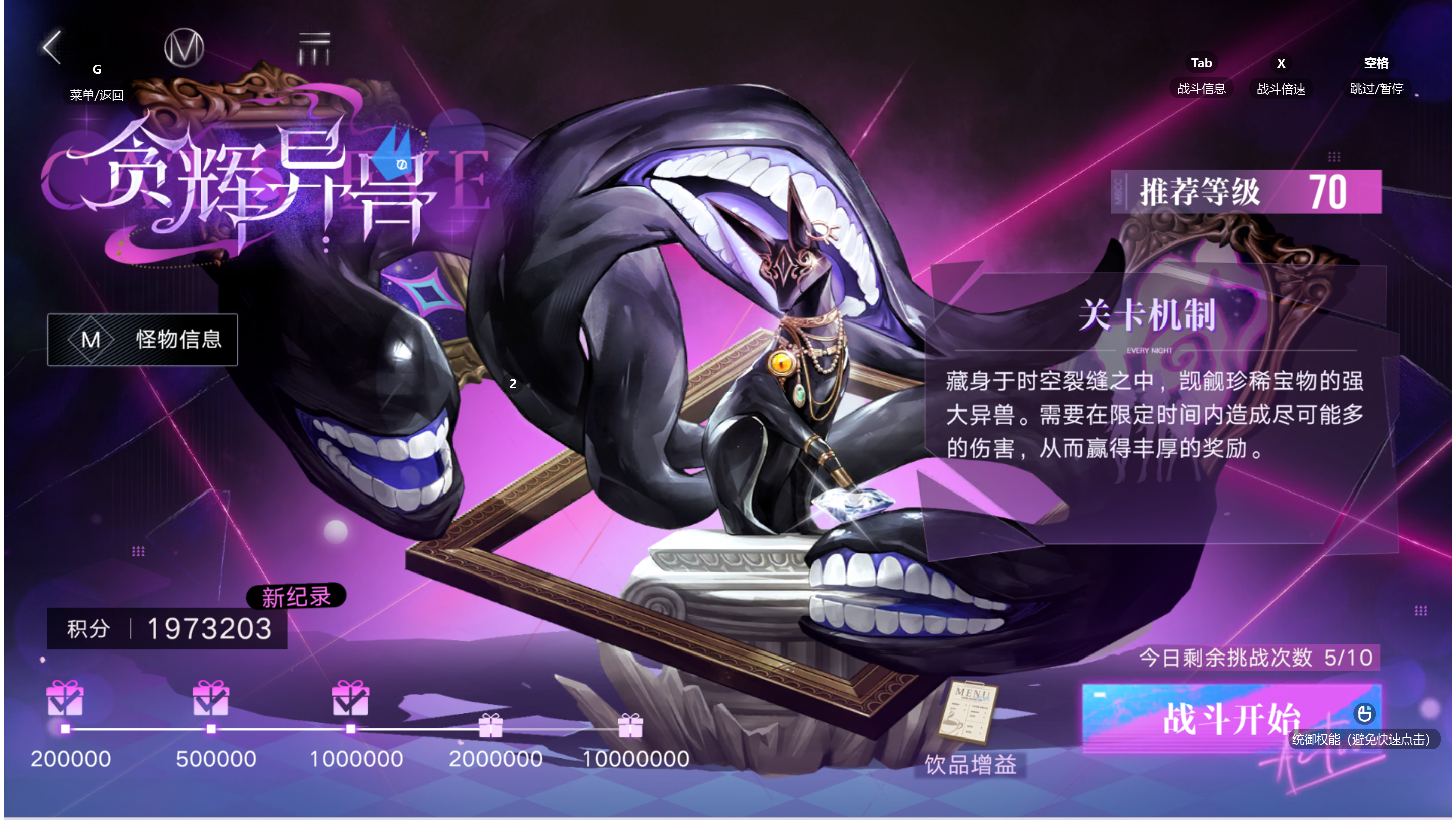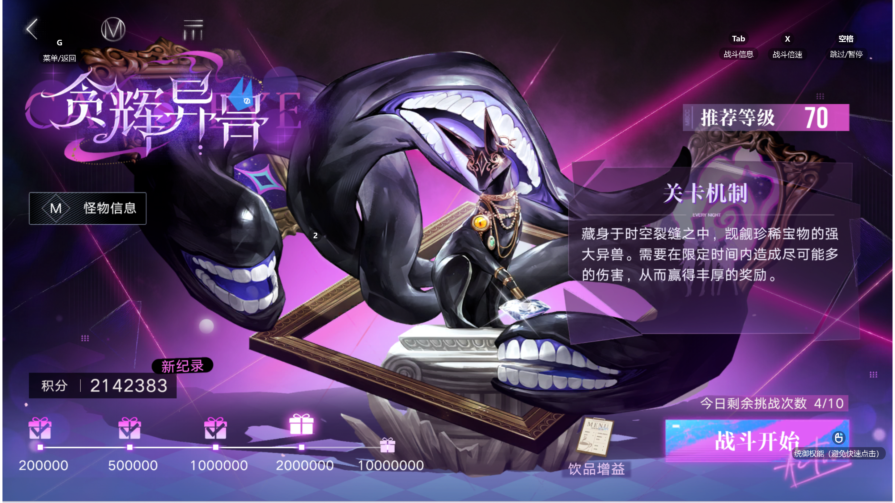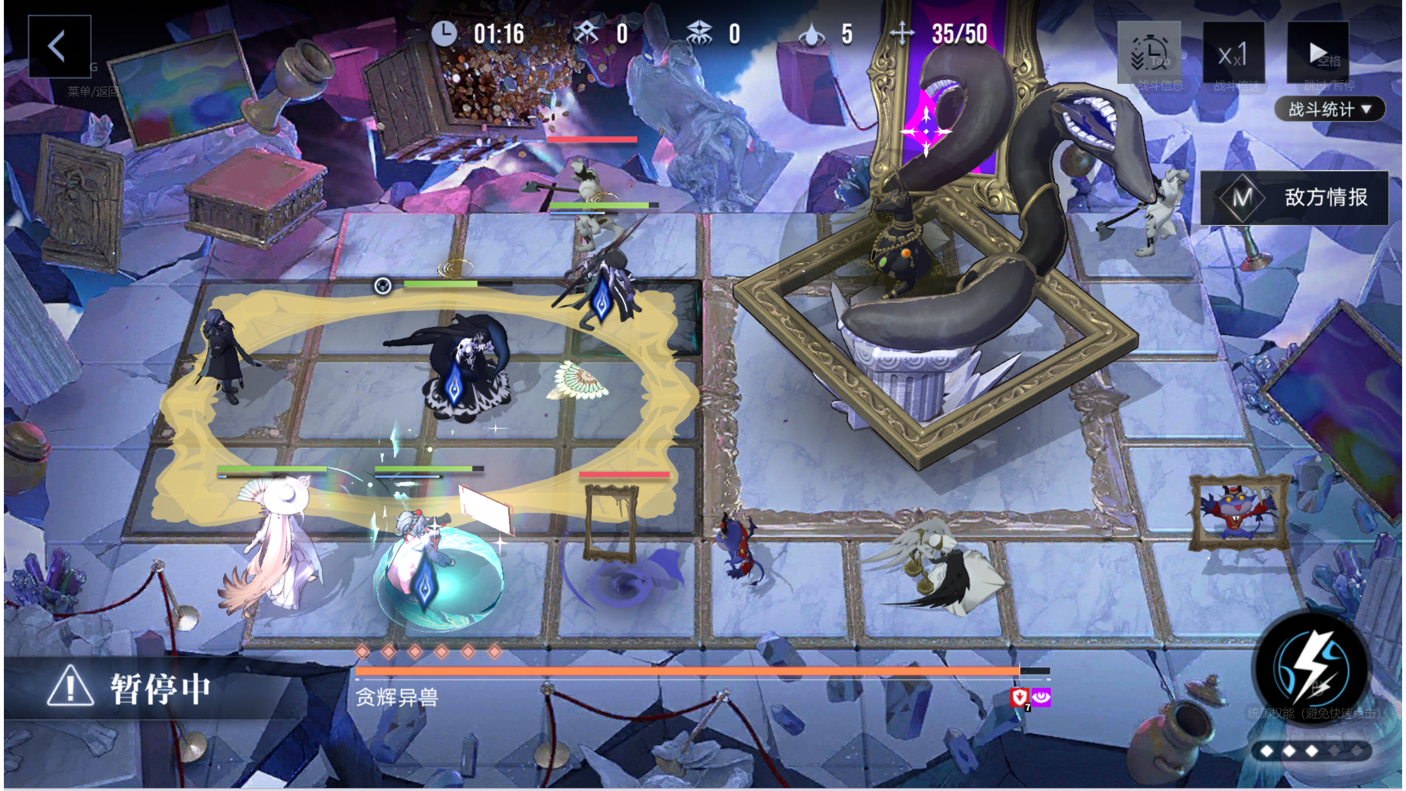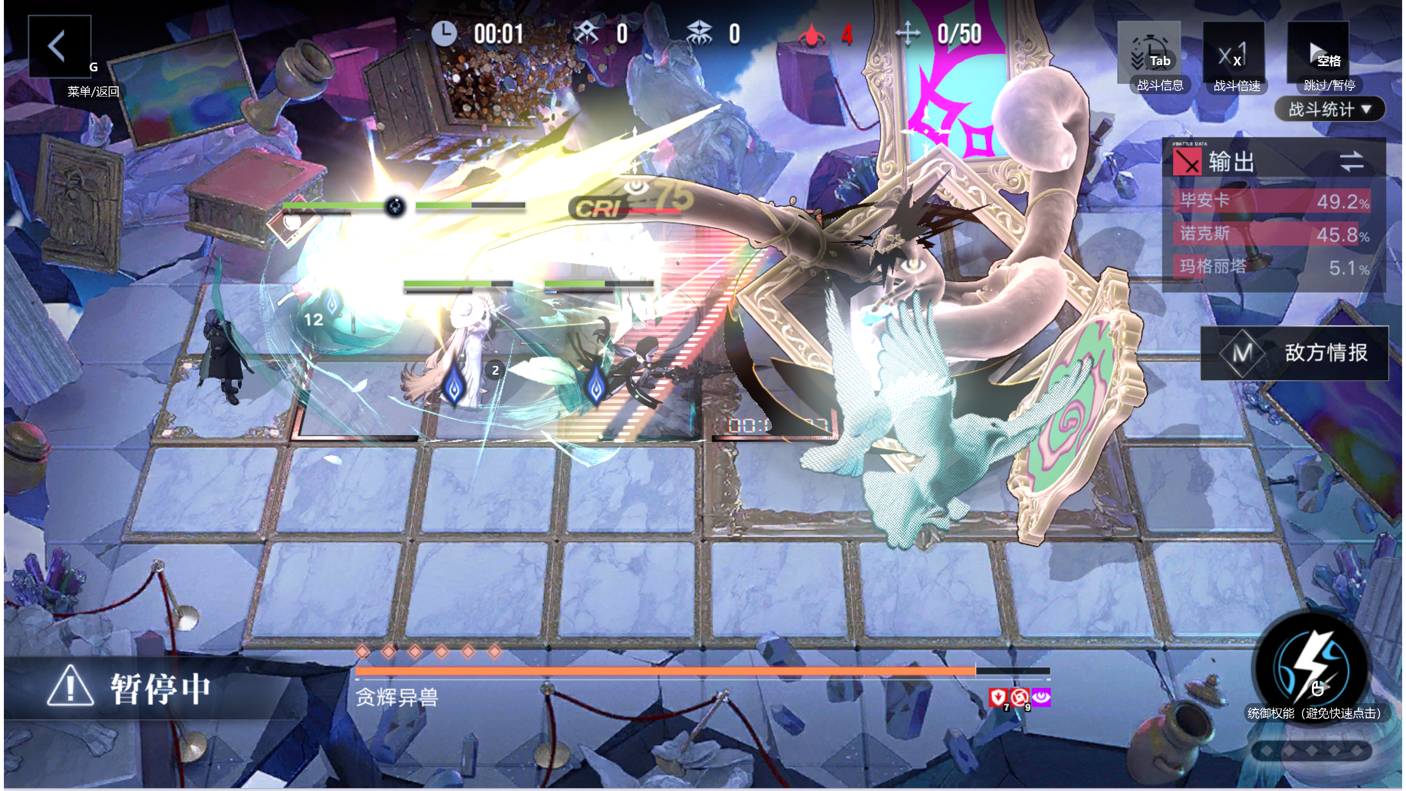 萌新四百万混奖励,大佬直接强杀就行最重要的是画框砸击 BOSS会在三乘四范围放这个,这时候能挪走的一定要挪走,因为BOSS会根据砸击范围的角色获得护盾,而且护盾不算伤害值,所以第一把我只打了八千分然后一个扔钻石的,这时候点击0.5倍速,然后看三个地块,地上会变黄,然后移动三个人去吃就行了然后是眩晕那个,BOSS会让地图上两
