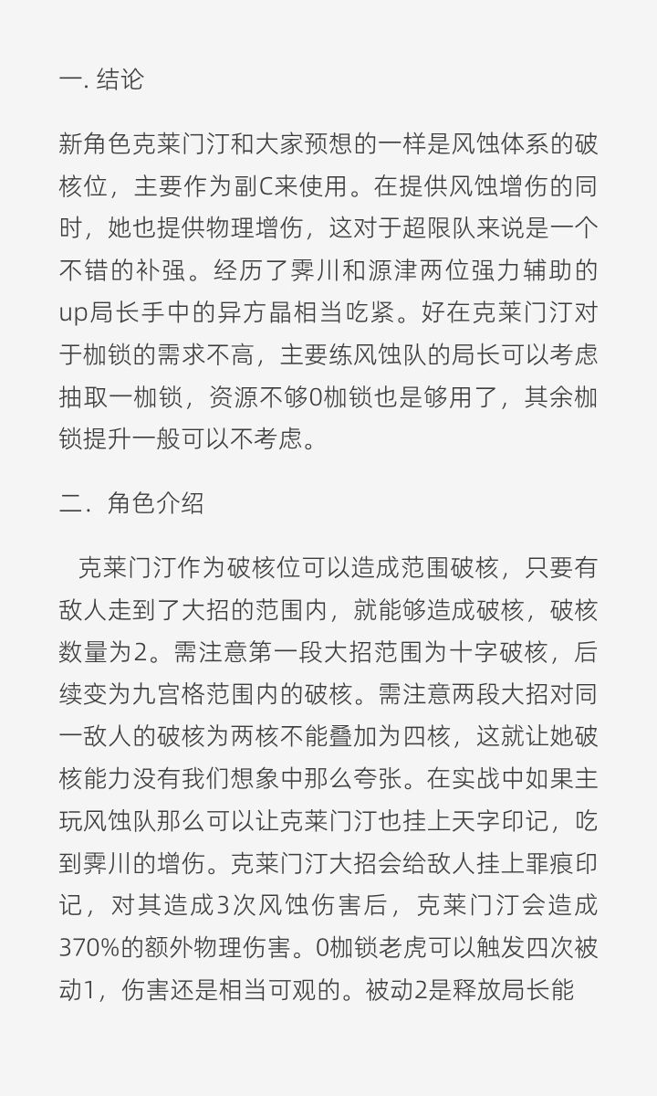 克莱门汀角色攻略