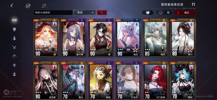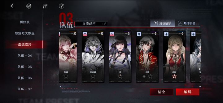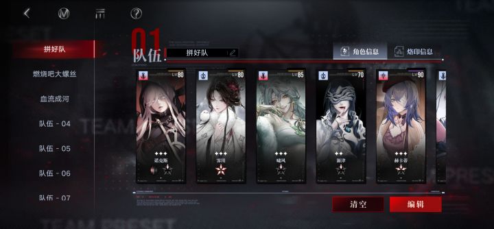新年版本入坑,连肝带氪阵容如图。满锁霁川,1锁虎姐,1锁源津,0锁重构曜。刚拉起来燃烧队,流血队人员齐的但是还没资源练。看大家都说工会战的烙印很重要,想去试试,但是不知道是不是练度太低了。米诺斯服。