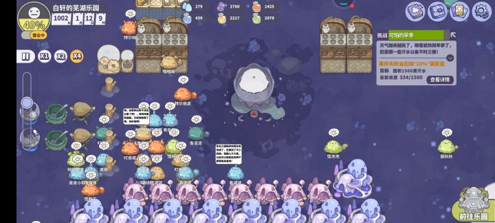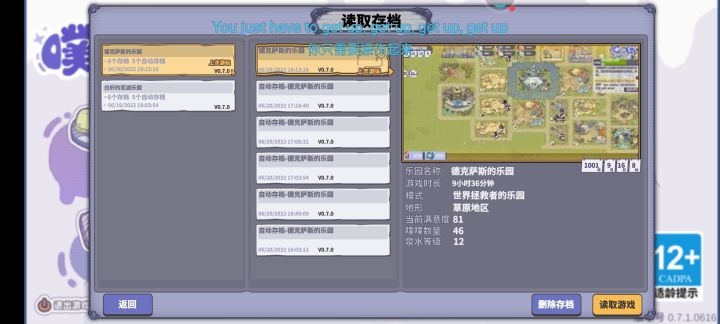 刚看到就已经被吸引到了,然后发现突然出现在手机里就立刻玩起来了,总体来说蛮有意思,玩了这几天,就发现bug太多了,我第一个玩的存档就出现了问题,读取不进去,进去就是最开始选三个噗噗的时候,名字全一样,没有样貌,然后物品的数量都在建筑物全消失了,只好重新开档,也是出现了卡顿显示不出建筑这些问题,但真的很有意思,勇气宝石那的建筑我没搞懂,噗噗进去后之后呢,没有建筑啊,说是勇者会交互然后获取buff,但勇气之塔貌似没法建造,还有全属性2以上我刷了老半天,差点气死,不过最新的存档我的运气还不错噗噗都是全2或者有3和2的属性希望快更完吧,看塔的介绍,后面应该有其他的塔可以让噗噗突破最高级3级变成4/5级的功能(没玩到勇气时我以为勇气塔可以突破,结果有点不明不白)最后那张图是我咋都刷不到全2以及以上的情况,我玩了其实有四五个档,但因为好多原因被我删掉了,或者是出现第一张图那样的bug后被我删掉,游玩时间肯定是15小时以上的。吧总体讲bug修一修,进度做完正式上线时,我想会成为非常吸引人的高评养成游戏的,毕竟噗噗那么可爱~