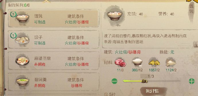 【第四阶段】 目标:五谷丰登 要求:繁荣3000/铜币20000/建筑:宗祠 本阶段所需要的建筑主要材料,还有固定采集跟第三阶段一样,需额外加上野菜部分建筑材料,我们需要提前购买。 同时本阶段需要攒钱4W(来源:卖手工枫叶书签/布老虎/拨浪鼓/药臼) 2W用作升级/2W用作备铁匠铺所需 重:提前备好下一阶铁匠铺所需!!!!!(枫岭渡商人买东百石!) 主要建筑: 禽舍/石矿洞/学舍/织坊/竹屋/农田