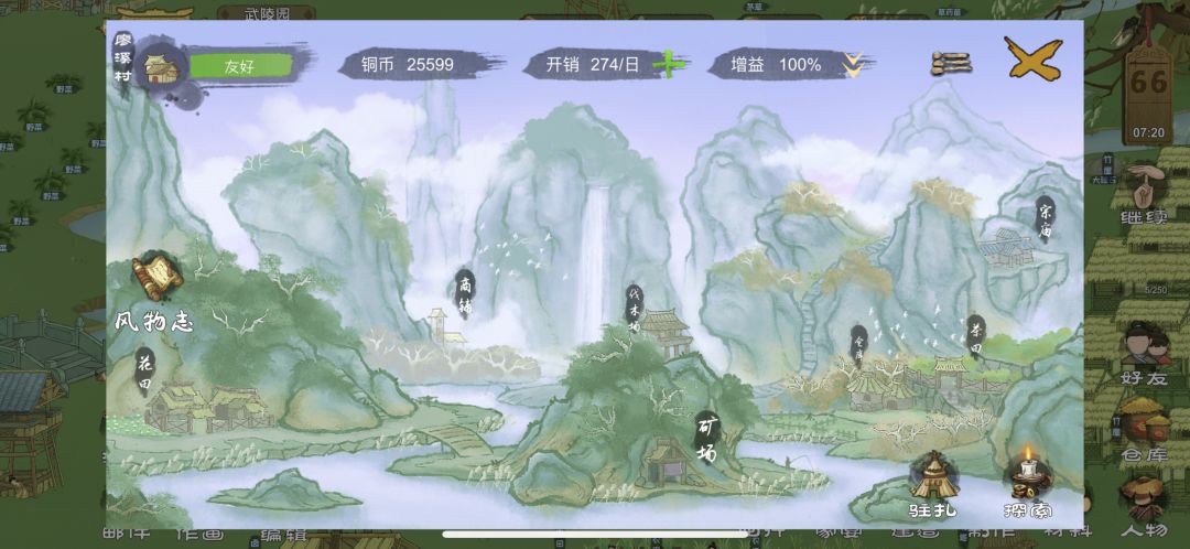 【第二阶段】 目标:小村初现 要求:繁荣:250/铜币:200/建筑:宗厅 此时,我们第一件事就是出行!首发站:廖溪村 派劳力最低的一人去探索拉人,一定要带着金砖和药! 带着金砖是为我们下一阶段升级所需,所以出行时要卖掉,同时我们还要购买小麦种子/盐/花椒/酱油,为我们后面种田和做饭,打好基础! 知识点: 1.劳力关系着效率,前期我们基本所有的工作都需要高效率的,但是探索没有劳力限制,所以,低劳力