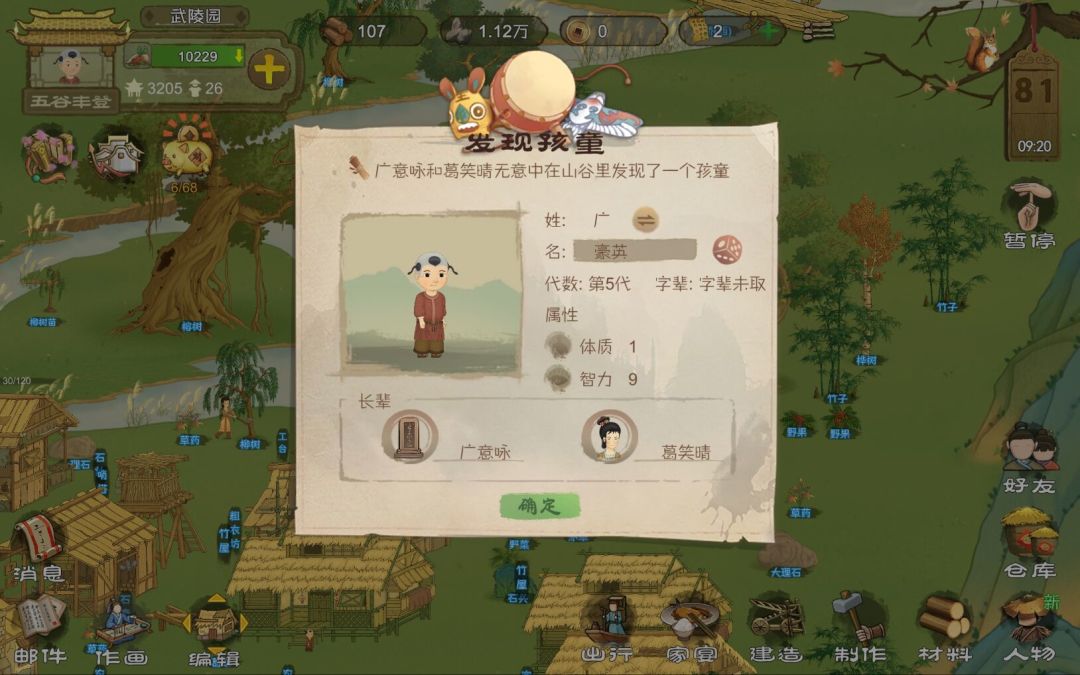 游戏初始人口为7 3天后会有一个访客和一个商人,和商人交易(我用的仙桃(教程里让你使用的那个),前期没什么用,没玩到后期)兑换访客爱好的物品类型(商人卖书的,书不能学,技能要学堂,学堂在后期有)访客是随机来的,几乎每次都会和一个商人一起来。 升级成为小村后会解锁探索功能,探索需要干粮(制作里有,不过前期只有炊饼),在采集野果时会概率掉落粉桃(可以用来探索),掉率高,前期未解锁探索功能时可以家宴预备