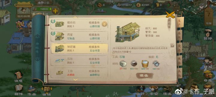 🍉总结:制作铁匠铺买买买大法好!!你刷廖溪村好感度的拨浪鼓拿来换钱然后直接去买不香吗?还不用你使劲肝。糯米砂浆可以自己做。其他三个材料直接去枫渡岭买,缺几个买几个。缺钱就做点手工艺品买给商人。尽量一次就把钱带够,毕竟前期粮食也很缺,跑多了浪费粮食。缺出行粮食的话可以买点小麦种子做饼,桃子什么的也攒攒,攒够就出行去。注意不要跑错村庄就行了。家里来了商人也可以看看你缺什么材料,就买下来,这样去枫渡岭就只买东白石了。制作铁匠铺千万不要去刷好感度!!!!!直接带人出行去买!! 你再刷好感度我开叉车叉你!!!
