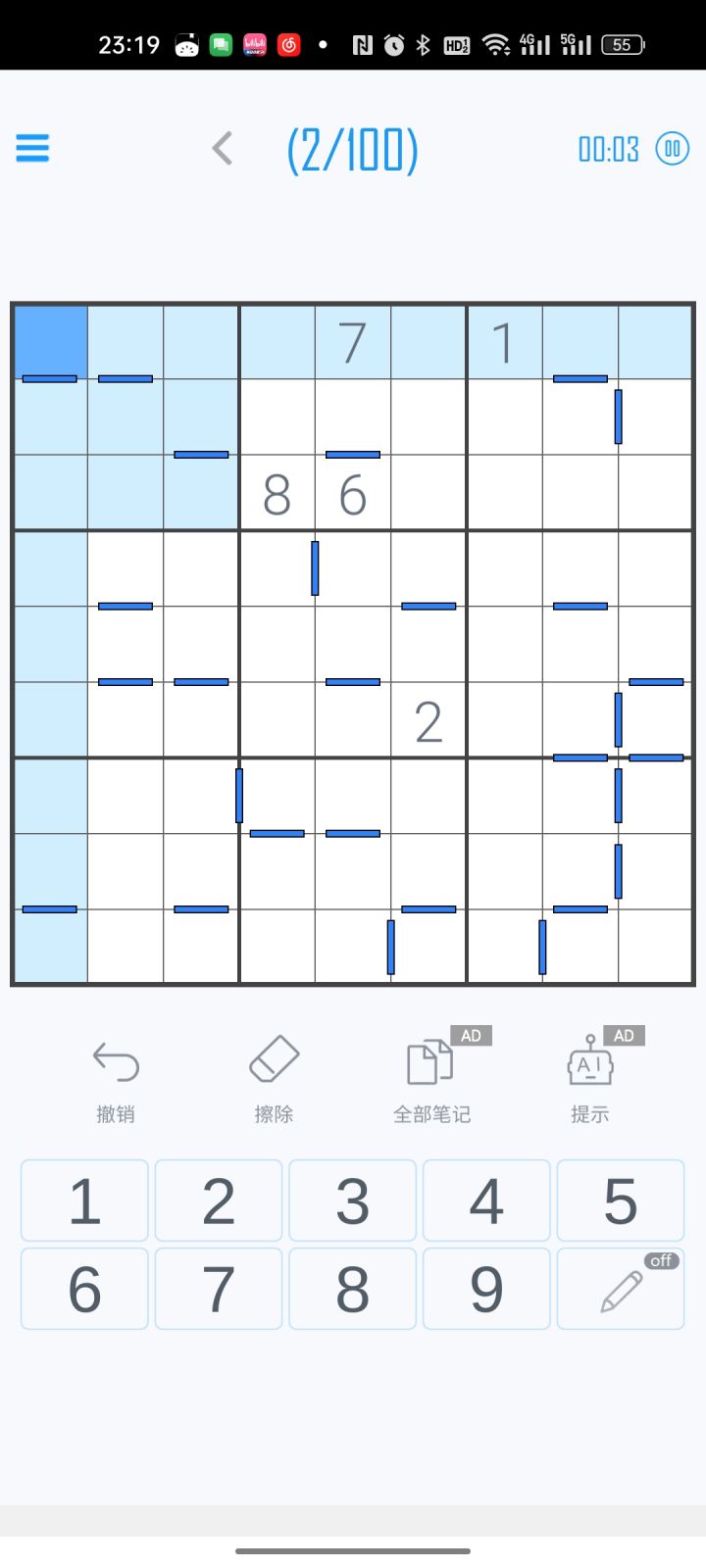 纯业务数独爱好者,数比数独是我最喜欢的一个模式了,主要原因是杀手数独太难了不太会搞,而其他的几种又太简单了没什么挑战~私心认为是玩过的数独app里最舒服的了,一键填充所有笔记yyds,一开始还会自己慢慢填,玩到后面就懒了打开数比数独上来就是先看广告填满再分析hhh提一些小小的建议哈,现在是点到某一个数字的时候所有含有这个数字(包括草稿)的格子会亮,这个挺好的,不过有的时候想看一个数字的分布,但
