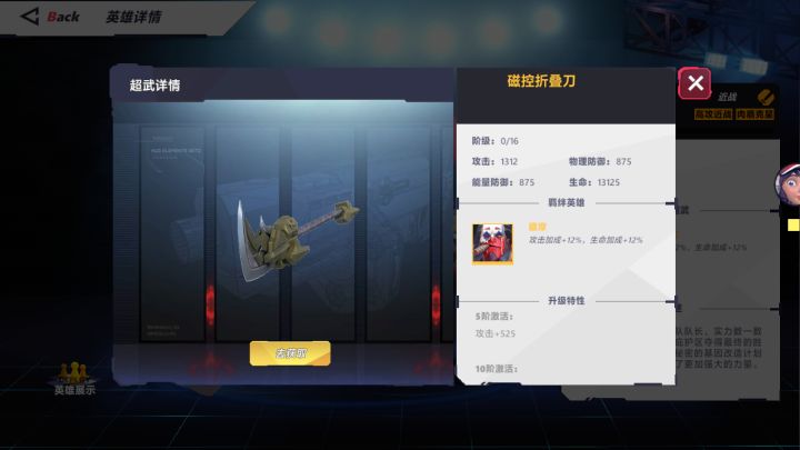一、英雄阵营正义二、英雄类型史诗英雄、橙色三、英雄定位(斩鬼幽灵)近战、高攻近战、肉盾克星四、英雄专用超级武器磁控折叠刀五、英雄怒气技能索命狂徒:消耗怒气500,对目标造成2次总计400%物理伤害,如果该技能击杀敌人,提升攻击力和暴击率20%,持续10秒。六、英雄背景故事庇护区最年轻的回收小队队长,实力数一数二的精英战士。为了让庇护区夺得最终的胜利,他依然成为了某项秘密的基因
