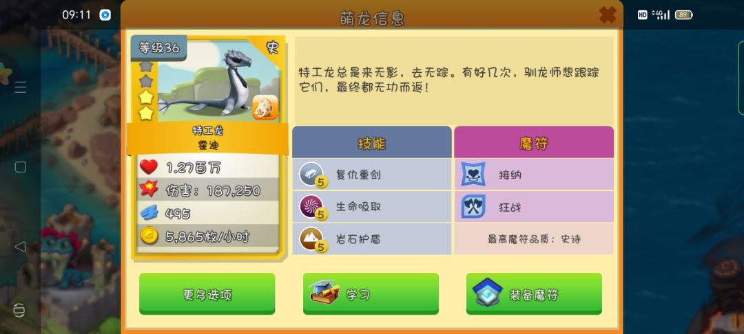 一些小Tips 1、传奇、神圣、原初和古代种获取随着难度越高,初始的等级上限也越高专属技能也就越强,如果开局前期就获得了可以速度培养起来哟; 2、与增益减益相关的魔符通常十分强力,像接纳、奇迹、巫术等等,前期好用的魔符搭配有虚空属性配接纳、狂战或者蛮勇、狂战,纯净汲取配合,奇迹和重生配合,也可以奇迹加闪避,注意范围伤害只吃浩劫的范伤加成,所以最极致的aoe一定是草属性搭配纯净、巫术; 3、活动优先升级的萌龙最好是史诗且带三属性的龙,方便日后开放各属性上限等级,其次是两属性稀有种,繁育史诗种、传奇种必备; 4、探险结束后先把农场全种满、蛋坑全填满再摸箱子😂😂; 5、除了必须用金币购买的栖息地,其他的都可以白嫖,钻石只用来开蛋坑、买体力上限、买高级魔符箱子、买领主龙和果树以及果树升级; 本人最强萌龙镇楼