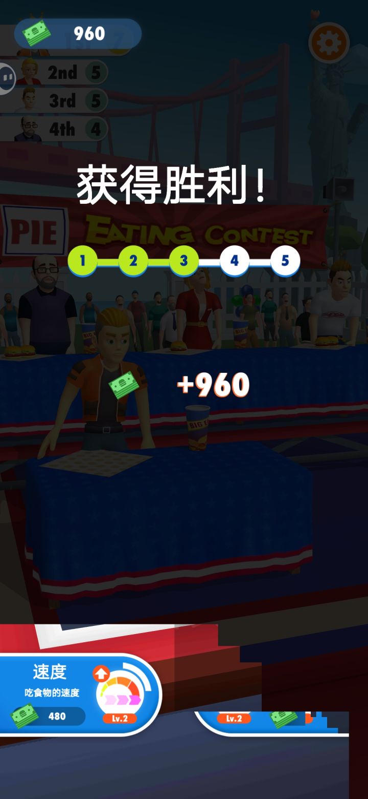 无聊,每关都会奖励金钱,用来升级你的胃和吃汉堡的速度
