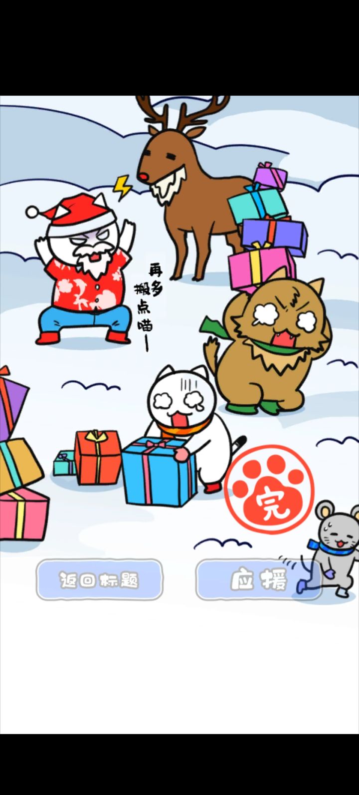 已经玩过好几遍的我就说一下吧,曾经卡住我的地方就是那个日历上的颜色,也就是雪孩子身上字母的顺序,最后的密码与圣诞有一定的关联,结局也不出所料的白猫又又又又搞砸了,至此白猫系列就暂时告一段落,作为玩家的我也算是最后一次评价这个系列了,挺希望作者继续做下去的,这种短漫比那种看图说话好了不知道多少,反正我还是挺期待后续的,就看作者Neko会不会继续做下去呢ヽ(=^・ω・^=)丿