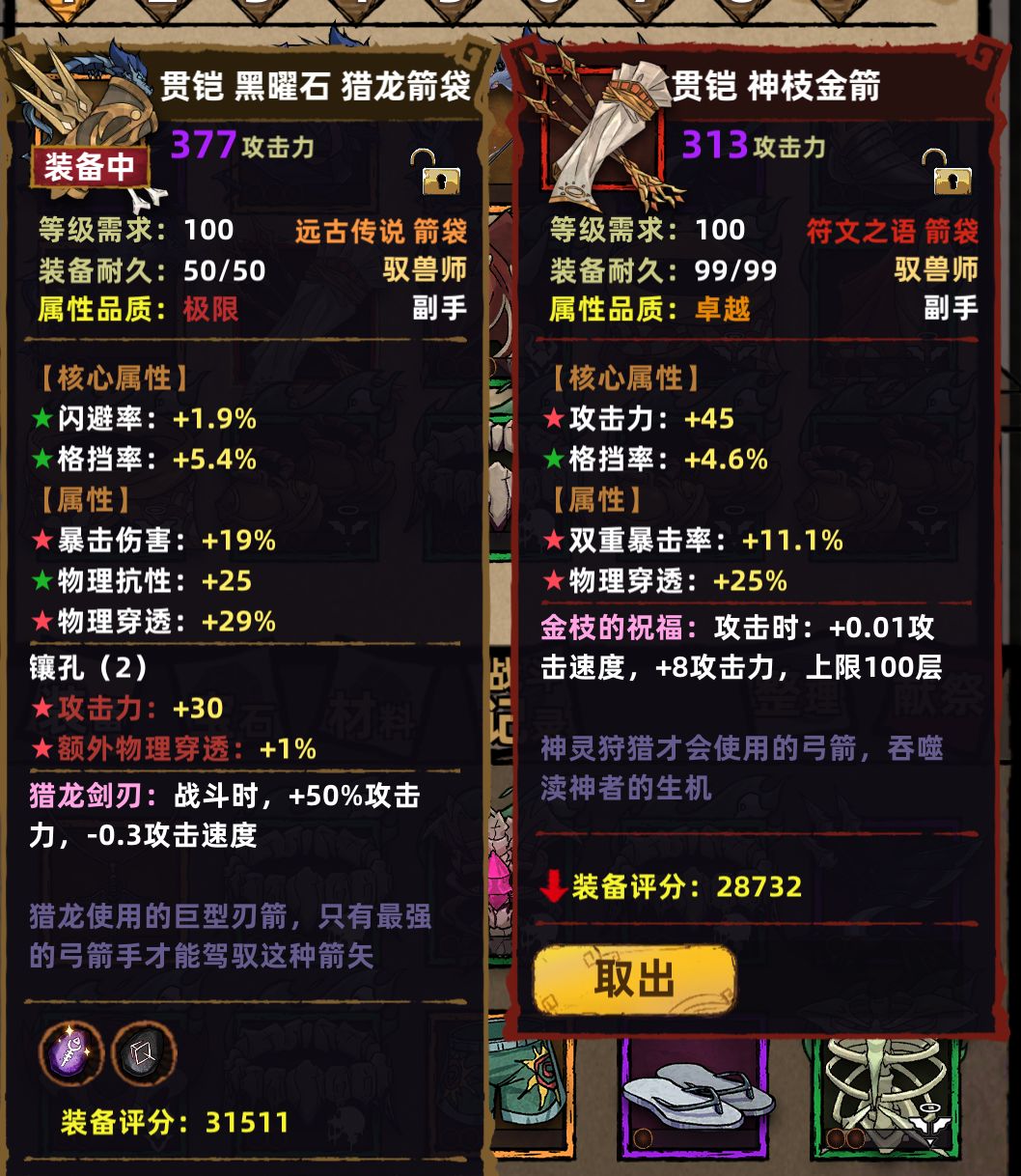一代版本一代神,御兽应该是接了猎魔的班,很多人将猎魔所有的装备符文之类全部拉过来,我个人感觉是不对的 箭袋,很多人用符文之语的,黑鹰箭袋加横扫加怨恨,但是个人感觉装备的核心技能不适合御兽,他的叠加时间太长了,100层,总所周知,御兽进场,不是你死就是我挂,哪有那么多次攻击为你叠加攻速攻击,所以猎龙的核心技能简单粗暴,个人比较推荐 然后说武器,我前期也用了符文之语,神灵猎场,还是叠加的,每次暴击才能