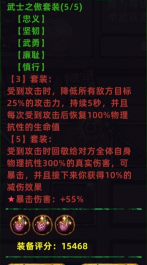 本人玩了几天,由于刚进游戏没看攻略误入武士坑,一路摸爬滚打也算研究出个伤害还凑合的一套 声明:强度肯定是比不上狂热的,但是刷到王城1000层还是够用的。话不多说,上干货 武士的核心输出点就是套属性的这个反伤效果,那么怎么才能在怪物打你之前就触发这个反伤呢?没错,就是自己打自己 就是这两个家伙,这套装备的重要组成部分,每秒反伤一次,角色攻击一下反伤一次,平均一秒能反伤2-3次 武器选择 王城外围的不