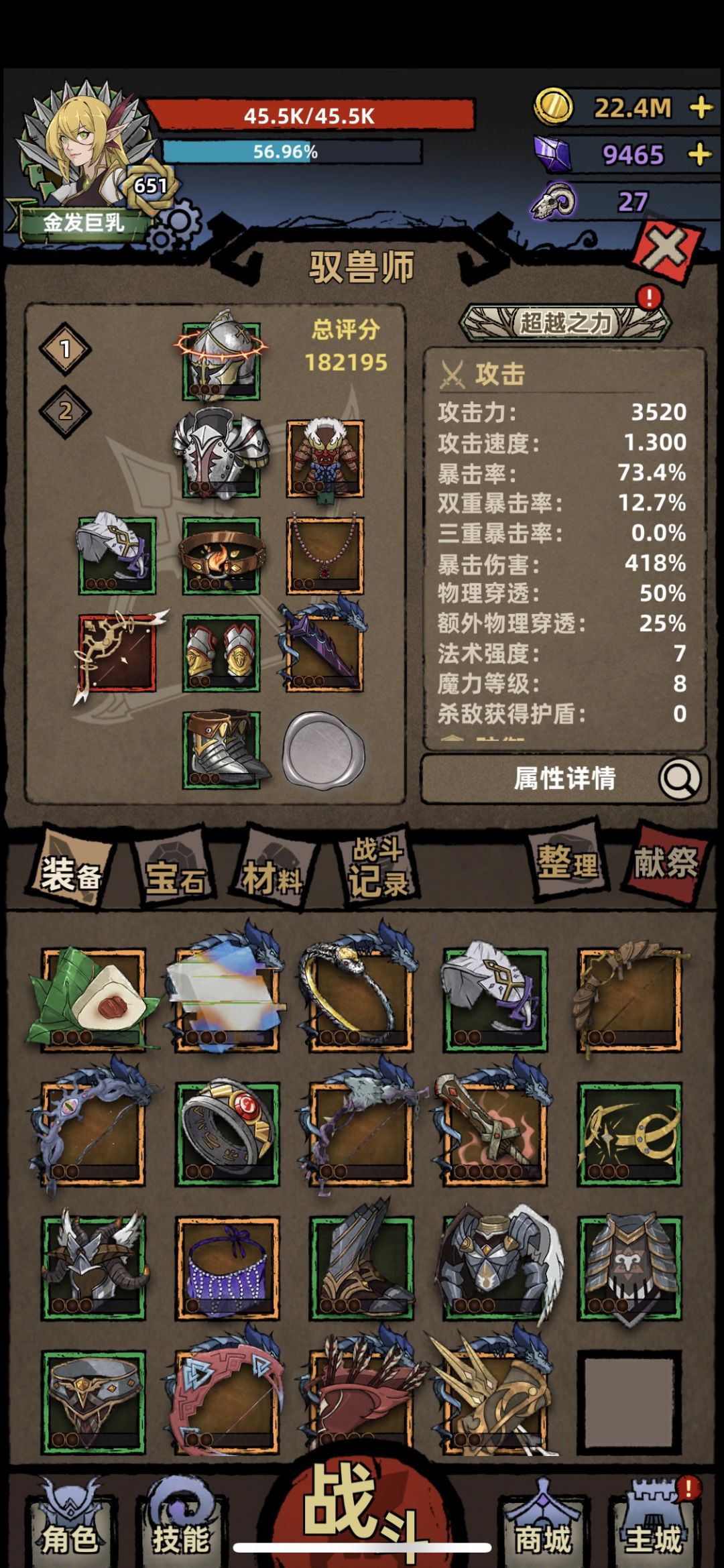 超高血量,怪我看我像boss。 核心远古血战三件,其它随意。 旧衣词条会同时增加攻击和法强,即便装备描述里面没有,所以这个套路全职业通用。 面板血量上限21亿,人物血条不是,装备词条计算是是以血条来算。 远古圣剑词条的胜利剑可以一用,鹿角棍小玩具。