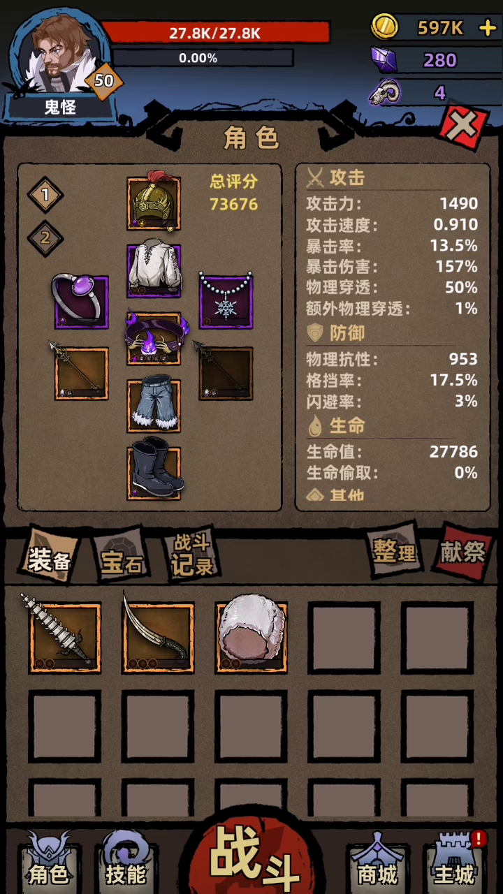 一开始没注意看到最后一个技能需要五个羊头,结果通关之后一直少一个技能,装备也没到顶,不过打boss还是稳稳的🉑