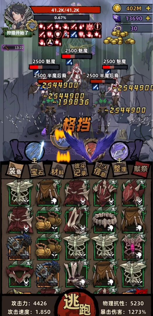 我御兽和你装备配置一样,暴击穿透闪避吸血格挡全满,爆伤900多,血51k。怎么没你爬的高。。。奇了怪了,2300多就开始艰难起来