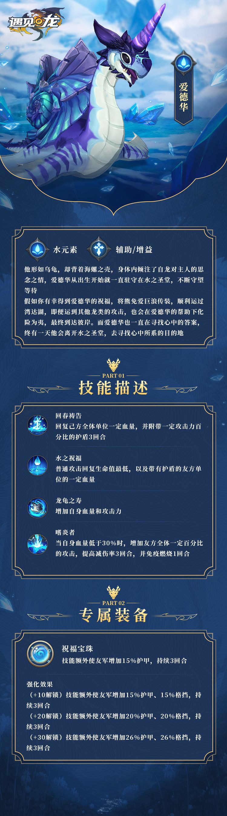 亲爱的驯龙师们,大家好~我是你们的千黎 今天千黎来为大家介绍我们水元素的龙族伙伴——守护者 爱德华 (实际数值以游戏内为准)