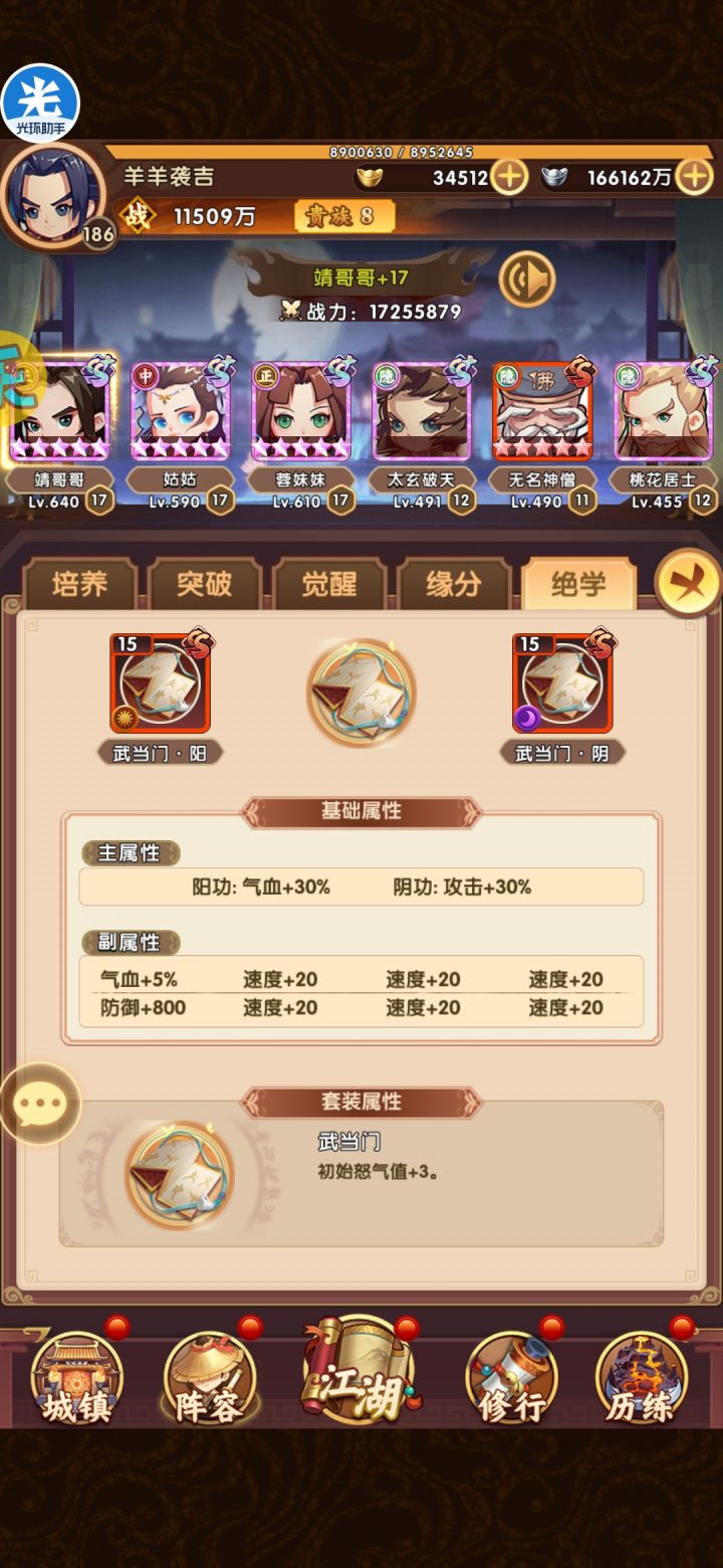 战力3200万,扫地僧太强了,黄五扫地换铁掌其他不动,推塔到了1724层,打神兽也很好用,推荐大家有条件的都养一个。