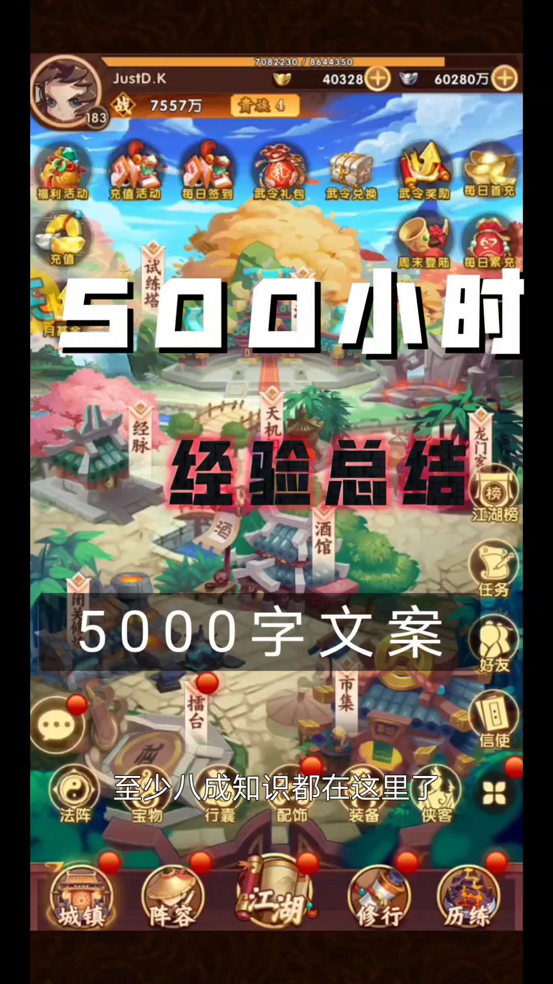 【全民武馆】500小时经验,干货分享,我知道的全部说出来了,5000字文案