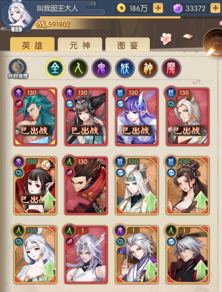 我是玩的14区的,抽的英雄都是妖的就玩了妖,充的不多,目前V7,开服第二天目前六十一万战力,暂时排名第一。这游戏我最喜欢的就是回退功能,升错了英雄花点仙玉可以重置回去,刚开始我主玩的是妲己,慢慢发现妲己强度并不高,三个初选里面妲己应该是最不得力的。就回退了重新升了个天元袁洪,配了红青鸾和小白,暴击一棍八万多,输出很舒服。妖族里面青鸾小白加袁洪和雪姬这四个我觉得是比较强的,雪姬控制现在暂时体现不
