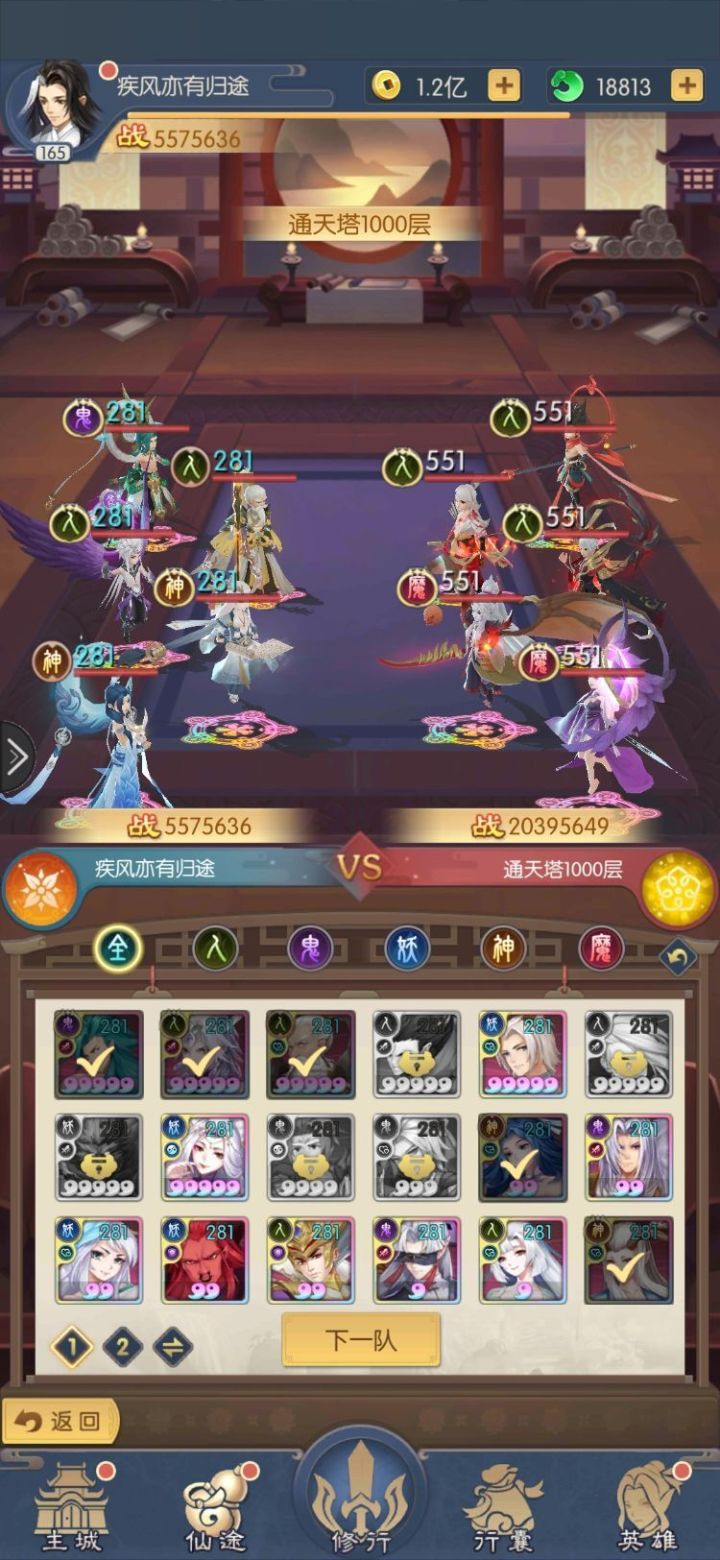 首先通天塔999层基本上已经是通关了,1000层基本上没个一年半载是过不了的。这里我推荐的过关阵容有雷震子(有不错的秒人,点杀能力,宠物带仙鹿),姜子牙(加血加状态,灵石,符咒带闪避,宠物带灵猴能当坦克用),嫦娥(灵石带抗控,净化,闪避,尽量保证自己不被控住)这3个英雄是必备的,剩下的两个我建议十重内胆释天(没有满内胆不要上,上猴子),白泽(或者白一夕)。阵容说到这,接下来就说说怎么过关。相信大