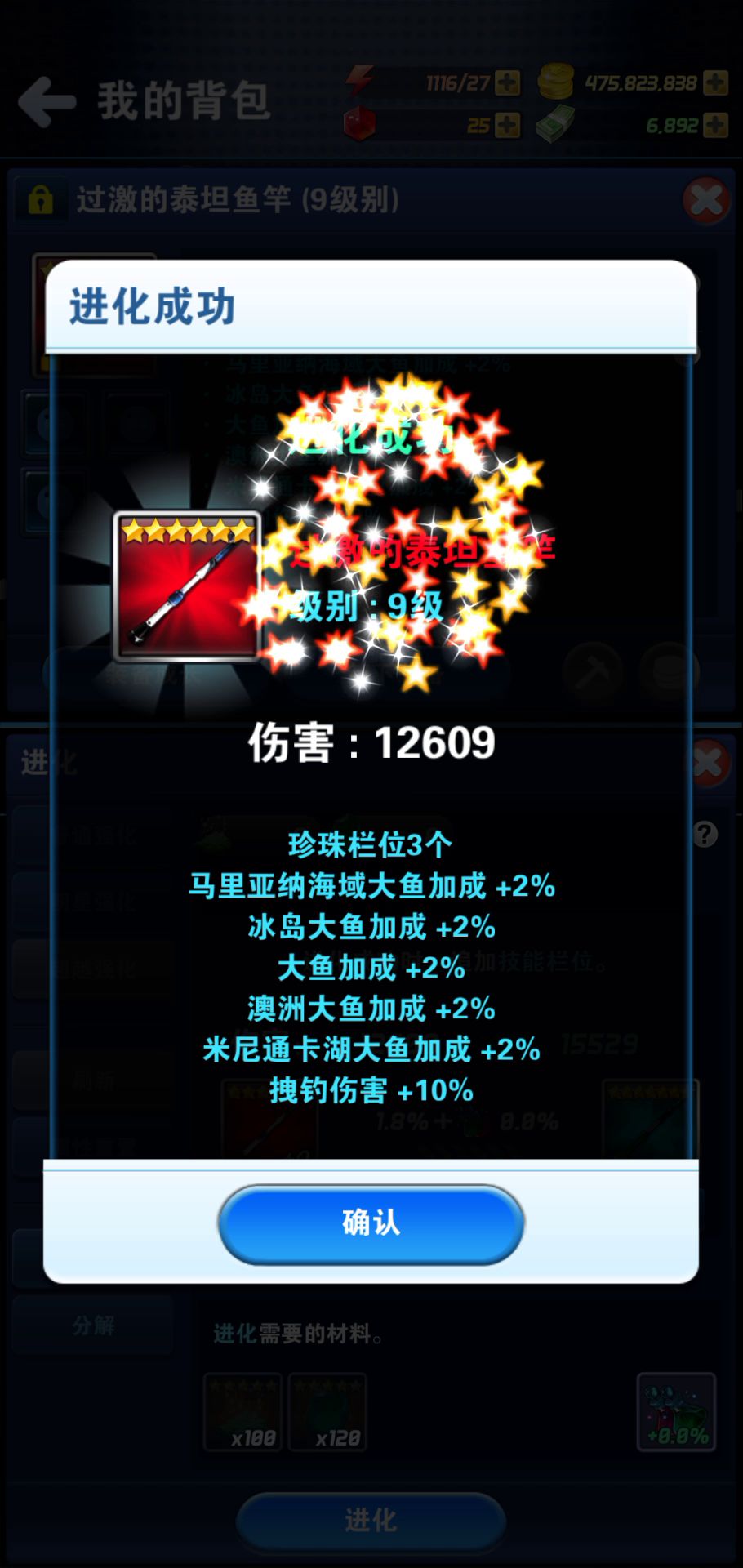 这做为大鱼杆应该能凑活用吧 另一个大鱼卷线轮还是五级呢,这就直接九级了,要是我进化盖亚能有这运气😂