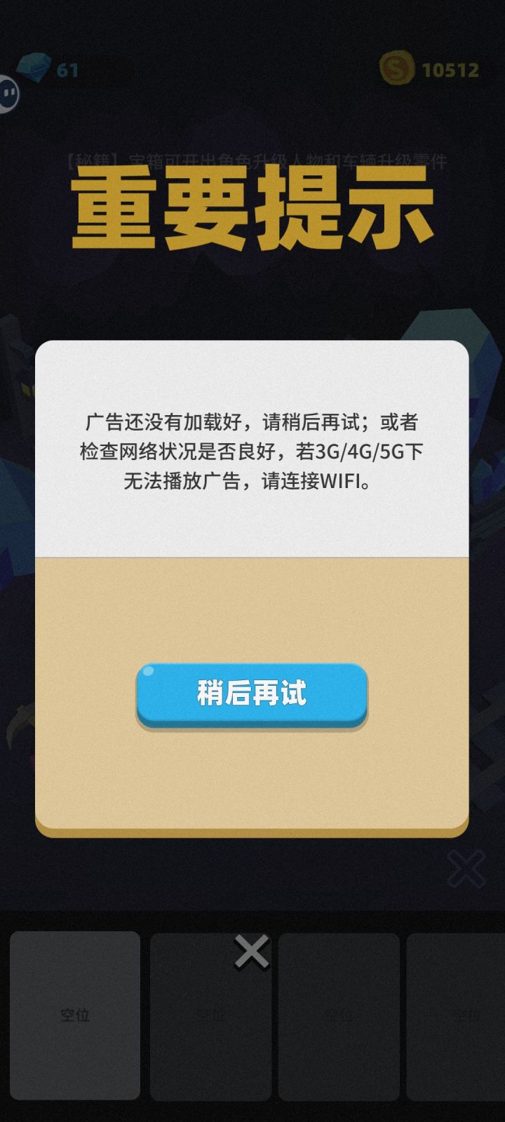 10.建议-网络权限获取:更改为可单机可联网(以获取广告)的半联网游戏