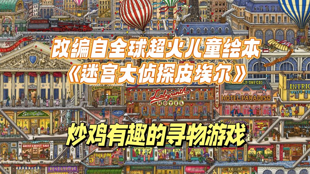 这款游戏改编自火遍全球的绘本《迷宫大侦探皮埃尔》 是由日本的绘画团队IC4Design设计创作的绘本插画 每一张插画都拥有非常丰富的细节 也是游戏能够好评如潮的底子