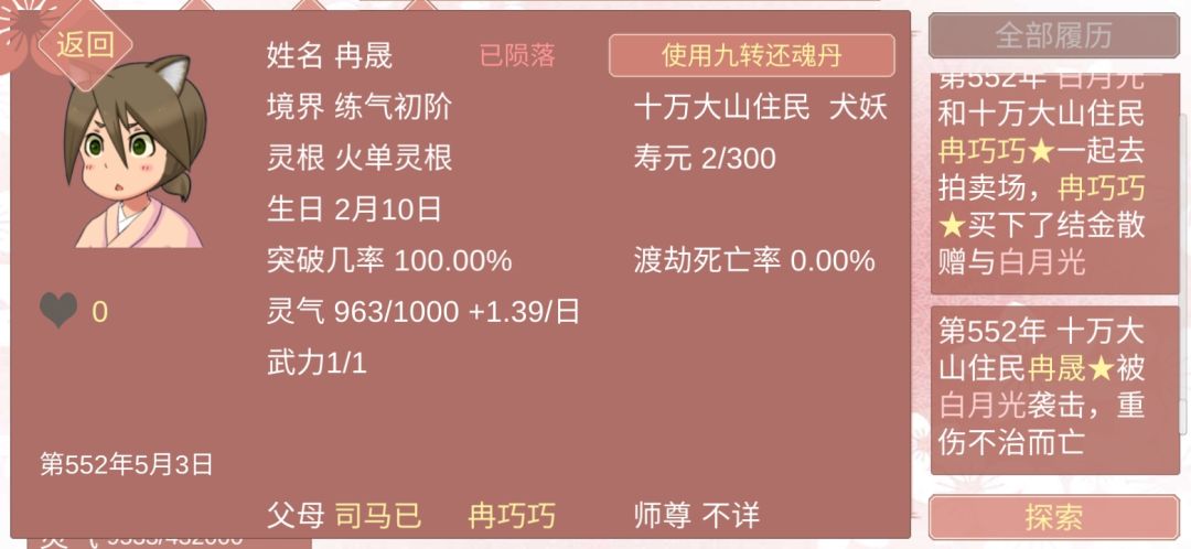 因为我是以自家oc为原型创建的角色,所以开始之前先哔哔一下主角的背景设定。 姓名:容玥 通称:小师姐 简介:被封印在某座道观顶楼衣柜里近千年的谜之萝莉,被现代道士解开封印后了解了各种奇奇怪怪的知识。又由于未知原因穿越到了某宗女修炼手札的世界中。 故事均取材于游戏内真实故事。有适量艺术改编。 本篇男女主镇楼。