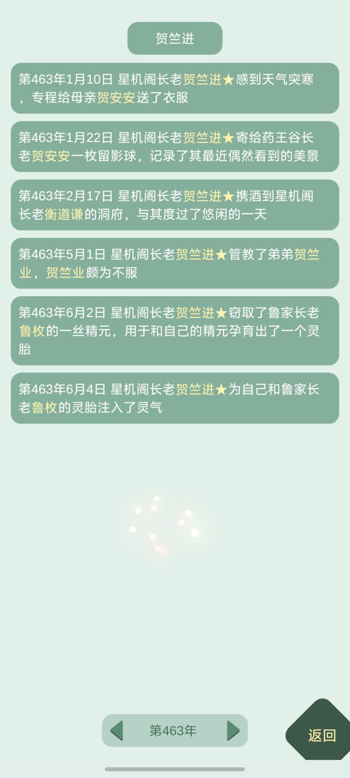 家人们谁懂啊我本来觉得这次开局超好第一年就捡到了蛋第二年遇到了一个一见钟情就提结契的,看他修为不错,我就同意了(主要看上了他的修为,把他当资源宝库了)当时忘记截图了,补一个后面截的然后第三年救了一个小朋友,要拜我为师第九年本命剑材料就齐了本来到这里也还不错,池塘里鱼也不少(虽然帅的没几个),蛋和剑也都到手了,慢慢等他们化形和孵化就完事然后…要孵蛋和温养本命剑的话,就需要大量修为嘛,
