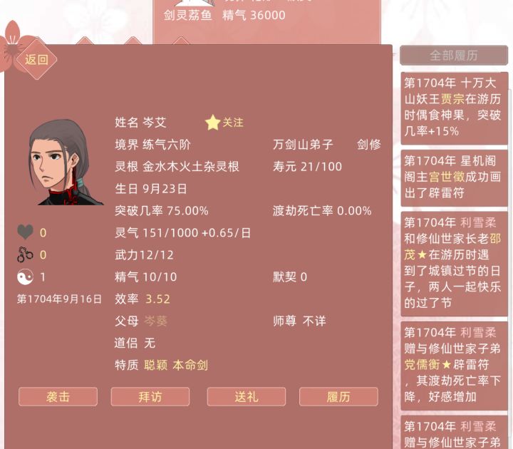 给遇到的问题做个总结,如果有错漏就麻烦姐妹们指正和补充啦~顺序是妖女-NPC通用-门派-经常被问到的tag-鱼/道侣-魂契-牵线种豆-系统问题妖女(玩家)1.永久不会被杀死,残血时进入养伤状态,也不会陨落于雷劫(所以姐妹们放心浪);2.不会有自己的后代,但可以收徒弟(独自游历可捡,如果选择不收,ta会拜入其他门派包括魔域);3.整个游戏里唯一能成功攻略佛修的存在;4.不能继任宗主;5