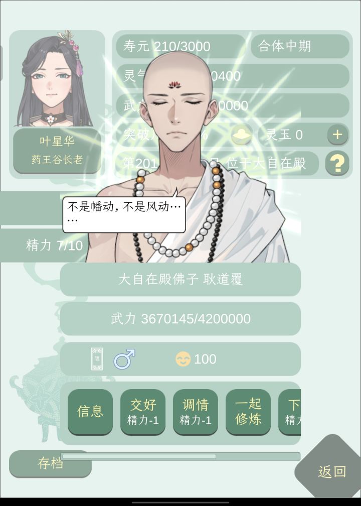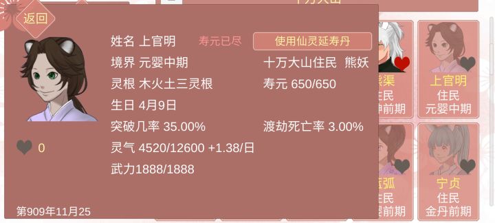 这个女人,玩的比我还野。这个其貌不扬的npc在54年泡走了我十万大山最帅的兔子,我准备当鱼或者种豌豆的兔子啊!!东西不够就没刷准备缓缓的兔子就给她薅了她在66年的时候,救了一个凌霄宗弟子苗蒙,从他此爱上了她,在76年的时候救了一个合欢宗弟子奚绛,从此他也爱上了她。上官明这个女人,在这个时候过上了道侣一个,小鱼两条每天都有人约着出去还有为她伤心落泪,而我在盘隔壁万剑山的一个长老日子很快过去了