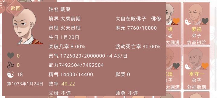 家人们谁懂啊我本来觉得这次开局超好第一年就捡到了蛋第二年遇到了一个一见钟情就提结契的,看他修为不错,我就同意了(主要看上了他的修为,把他当资源宝库了)当时忘记截图了,补一个后面截的然后第三年救了一个小朋友,要拜我为师第九年本命剑材料就齐了本来到这里也还不错,池塘里鱼也不少(虽然帅的没几个),蛋和剑也都到手了,慢慢等他们化形和孵化就完事然后…要孵蛋和温养本命剑的话,就需要大量修为嘛,