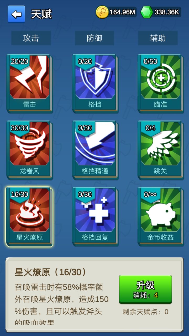 现在玩到四百关,原本有点期待300-400关的斧头品质提升,但实际斧头本身数据不变,只是属性可以加强一丢丢。我主玩震荡斧,估算起码要900关才能提升品质,而满眩晕几率只从25%提升到35%,完全没有肝的动力