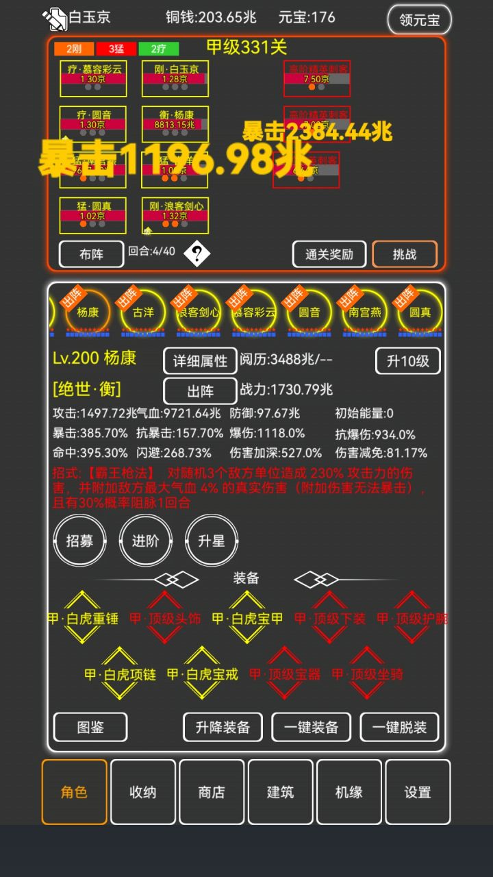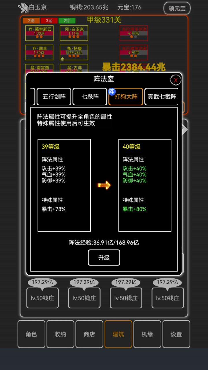 卡到甲级331关了,怎么样能快速提升属性,升级哪个方向提升最快,元宝花完了,武学和阵法短时间没有办法大幅度升级,经书靠看广告的元宝买,每天提升属性一点点,啥时候能通关,求大神指导往哪一方面投资资源提升属性