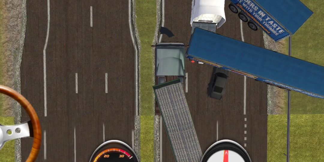 游戏里出现大车车厢横着走,不少车祸,广告,车里面看晃动。