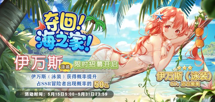 【夺回!海之家!】SSR冒险者「伊万斯(泳装)」限时招募今日开启——